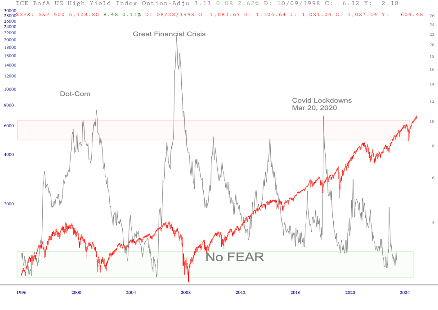 Pretty self explanatory. Chart goes back to 1996. Red line is S&P500
