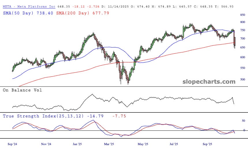 I have been cautioning my premium readers since July when META was cooking higher, to wait until it can prove itself above $785 before you buy, as it has faked out quite a bit. And as you can see it carved out a range and failed to exceed $785 with any oomph and failed horribly. Now sitting below the 50 and 200 day ma, which is a no go for me.