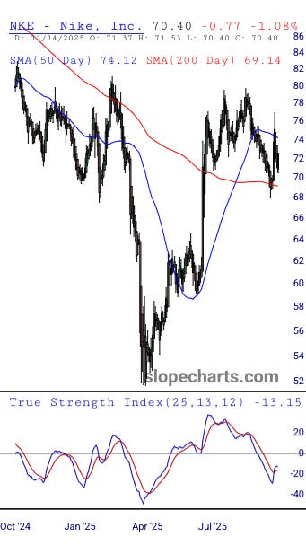 As the subject states. Under $71 NKE 0.00%↑ is a risky hold or potential short candidate. Also watch consumer discretionary and yields for clues.