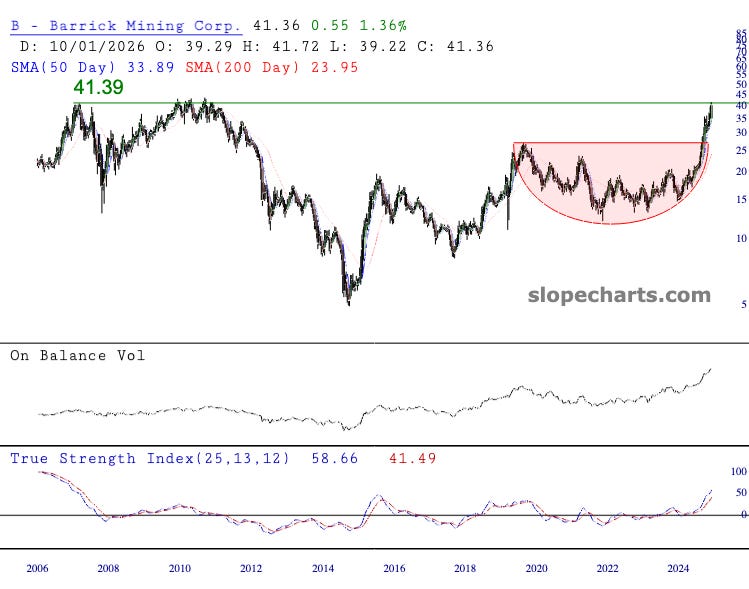 Barrick has already doubled since it broke out of it’s base and is approaching previous highs from 2007 and 2010. Will there be enough runway to finally break above 41.39?
