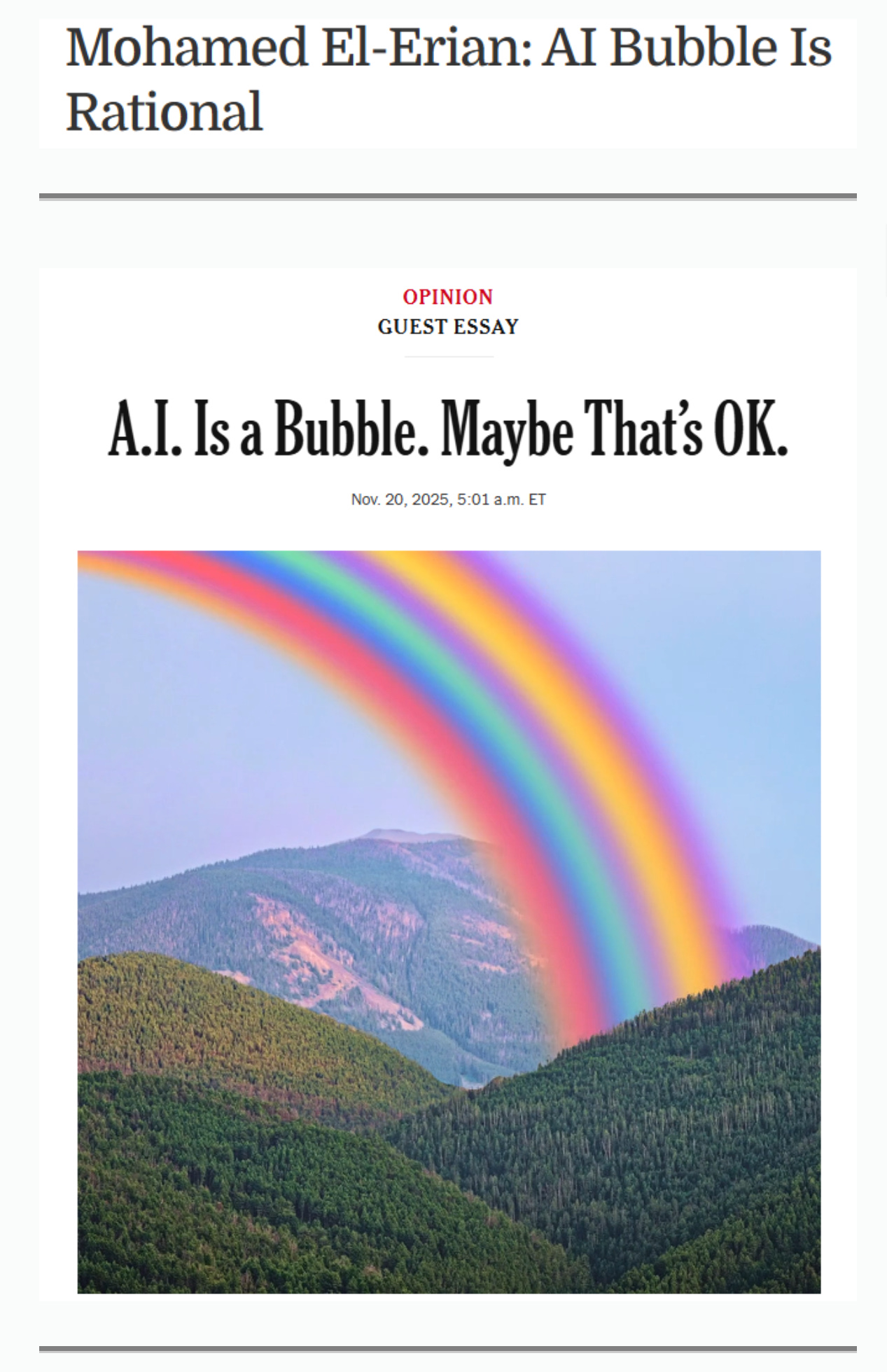 I read the NYT article by Mohamed A. El-Erian and it's Rainbow Horseshit