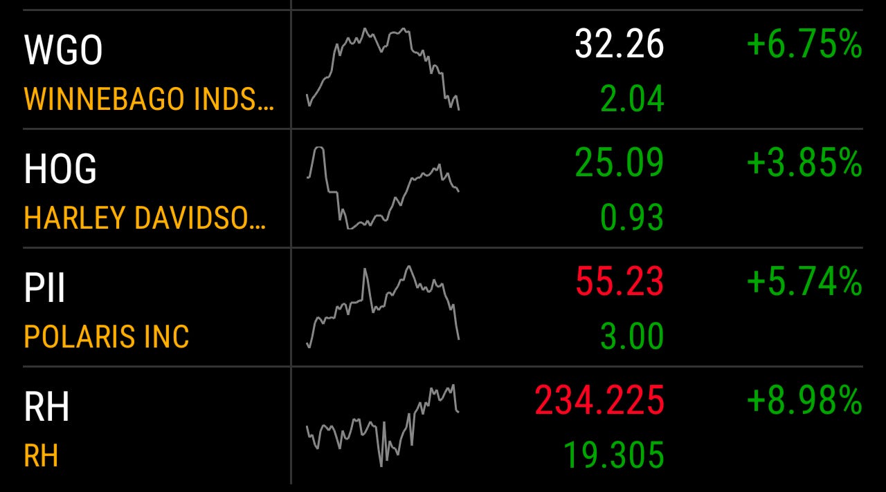 Apparently, the economy is great and people are spending on $100k RVs, Harleys, jet ski and lux furniture. Right?
