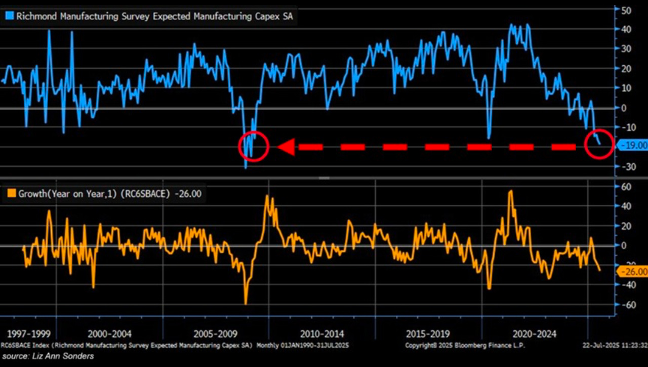 Richmond Fed Manufacturing index dropped to -20 points in July, the second-lowest since the 2020 pandemic. 19th consecutive negative reading. I am sure it will be fine