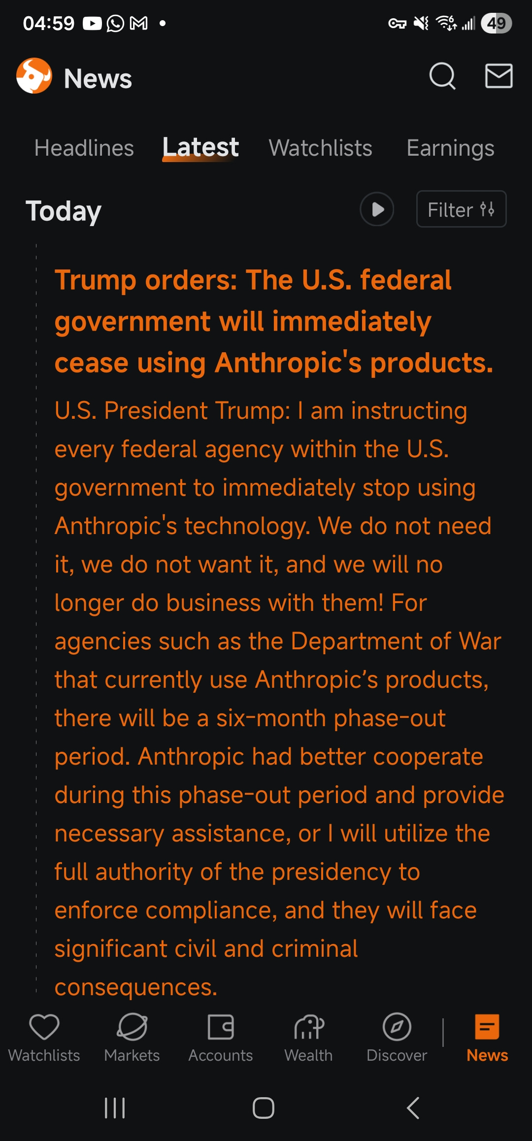 I said below on Wed. Anthropic just proved us all wrong. They budged a little, but not enough for Military use. I have respect for them.
