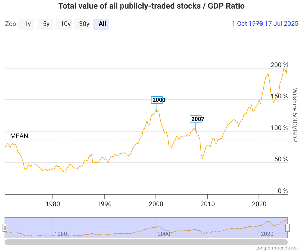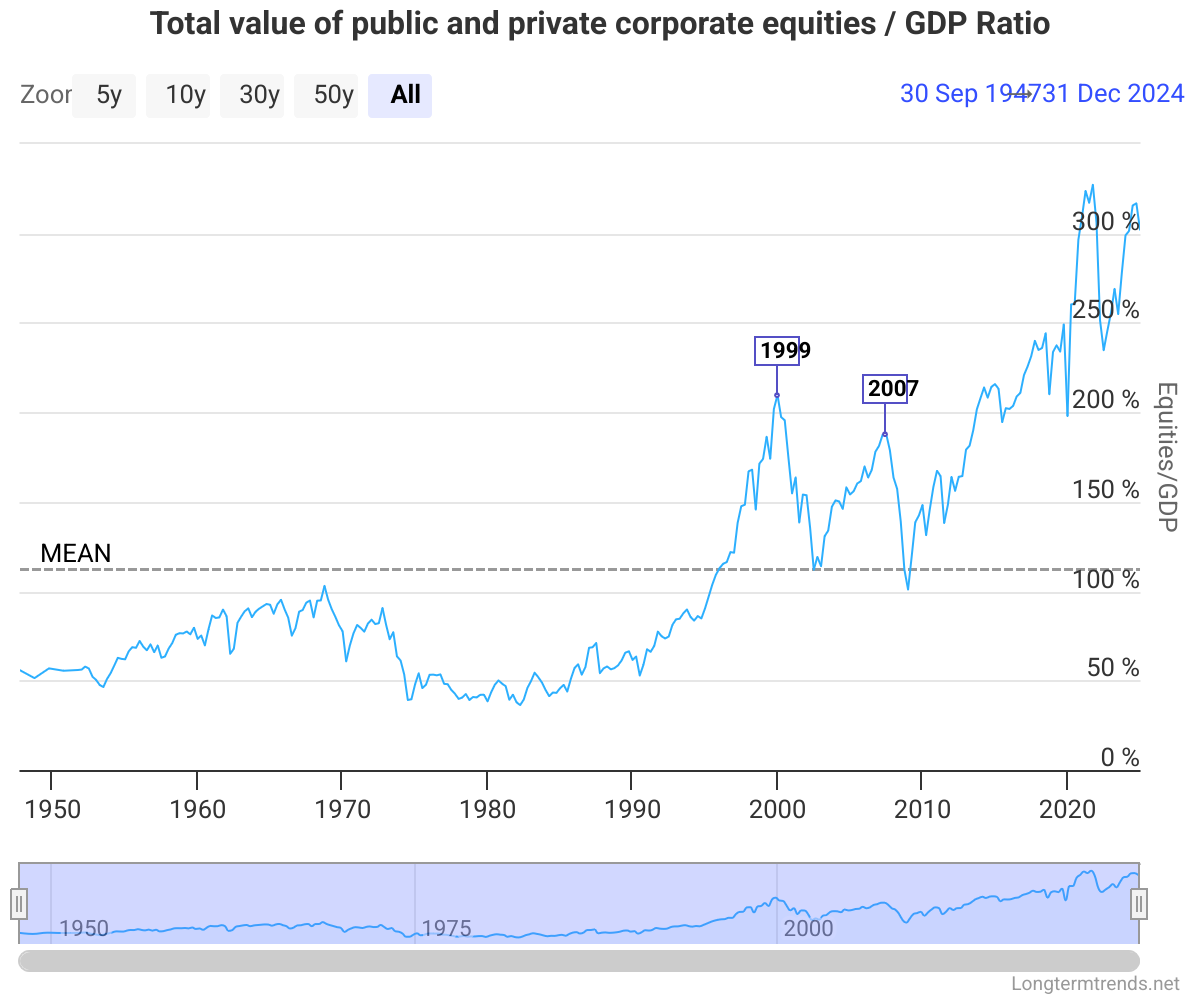 The stock market is more overbought than almost any other time in history. While maybe #ai is the culprit, I suspect it is the same catalyst as prior…human folly.