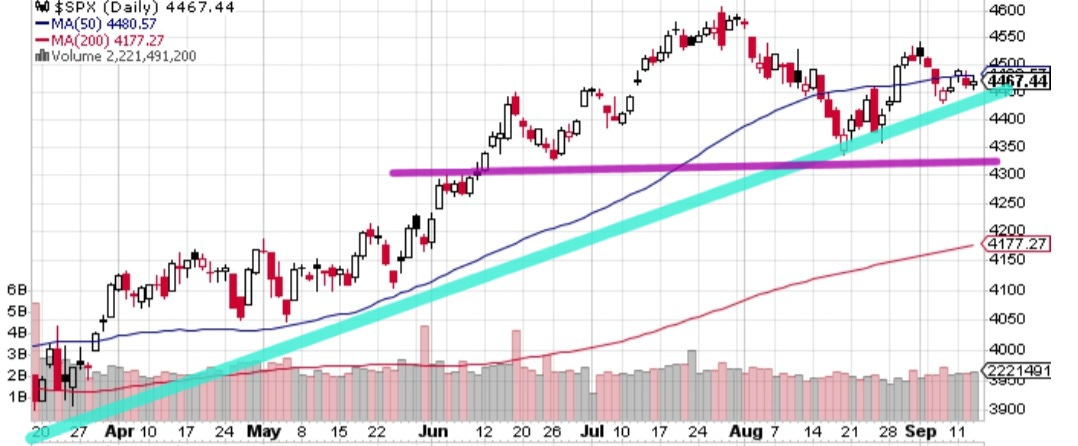On the surface this chart is the entire story for the year. The next chapter starts next week with rate decision and guidance Sep 20 at 2pm ET. As you can see in the chart, we can easily go up to new highs or crack the teal and or purple lines of support below.