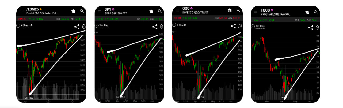 These wedges need to be monitored as we melt up on zero relative breadth and or volume