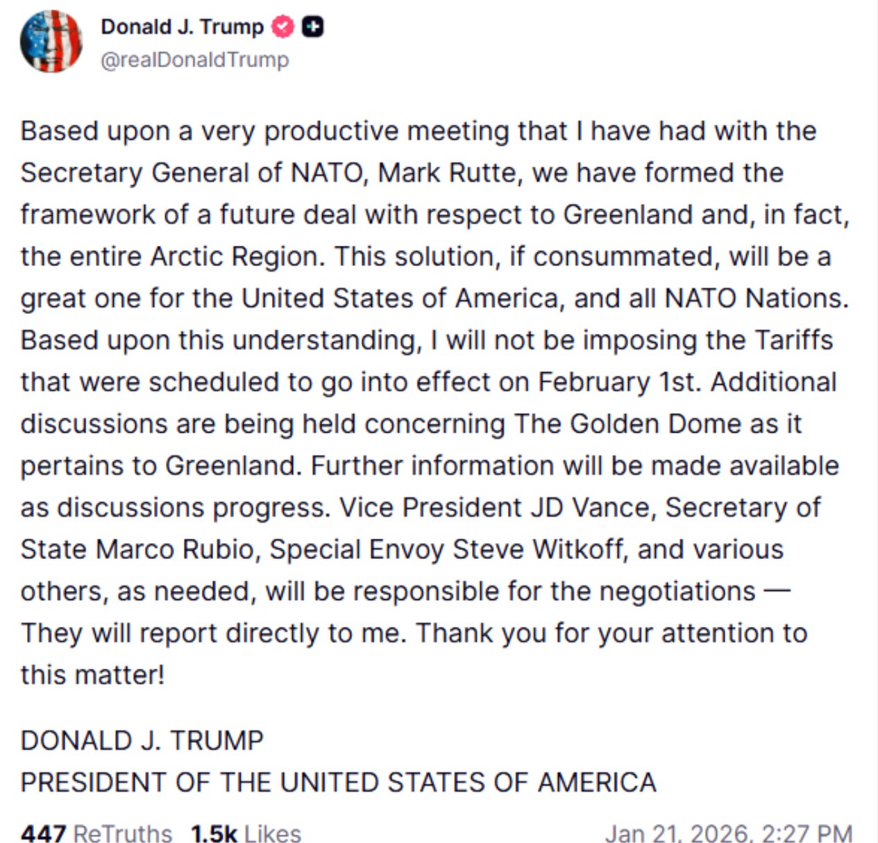 Trump announces ‘framework’ for future deal on Greenland, cancels planned tariffs on Europe