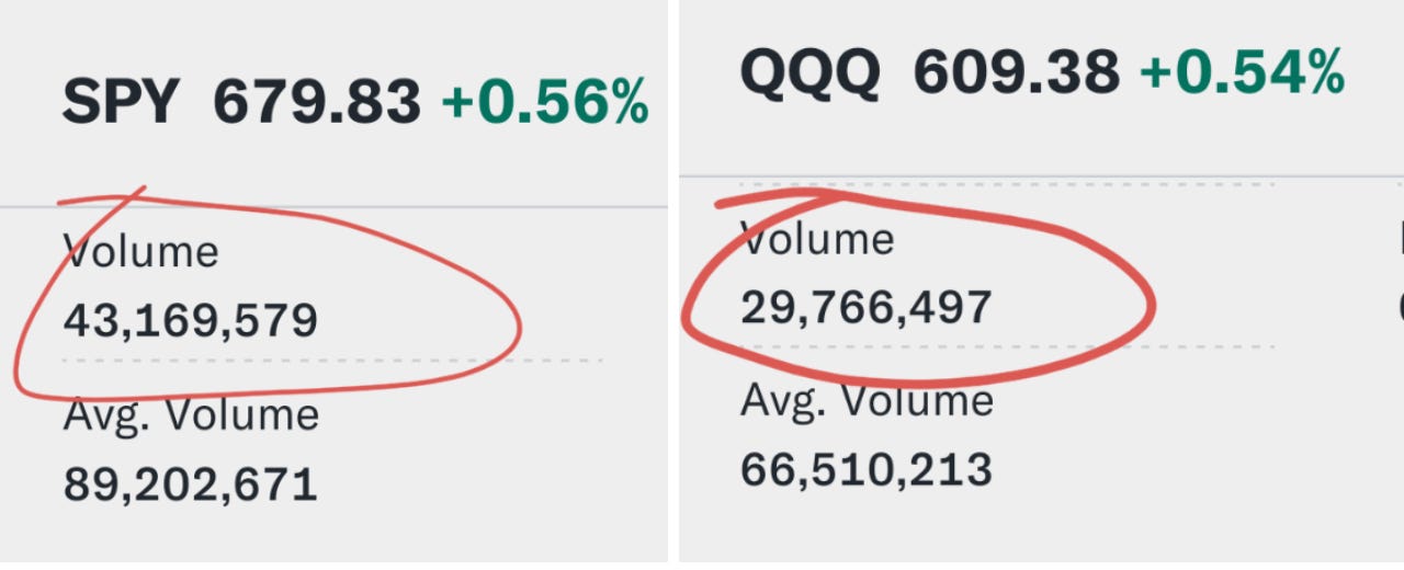As of 3:15pm ET the volume was tracking less than half of daily avg.