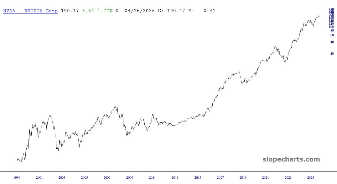 Lifetime chart of $NVDA (up 536,000% since IPO day low)